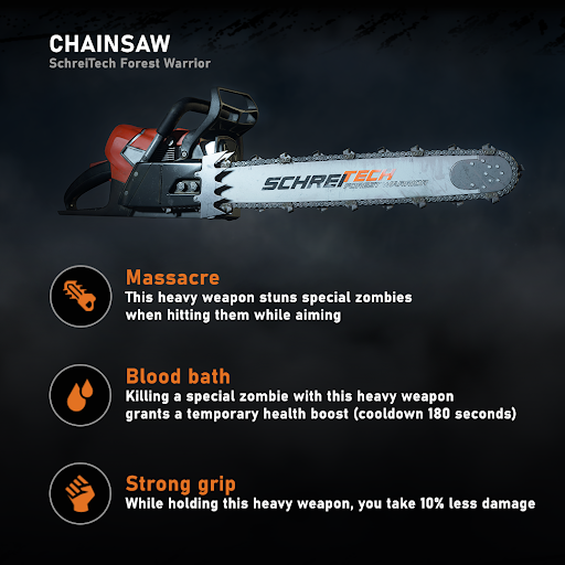 - Chainsaw: Massacre, Bloodbath, and Strong Grip.